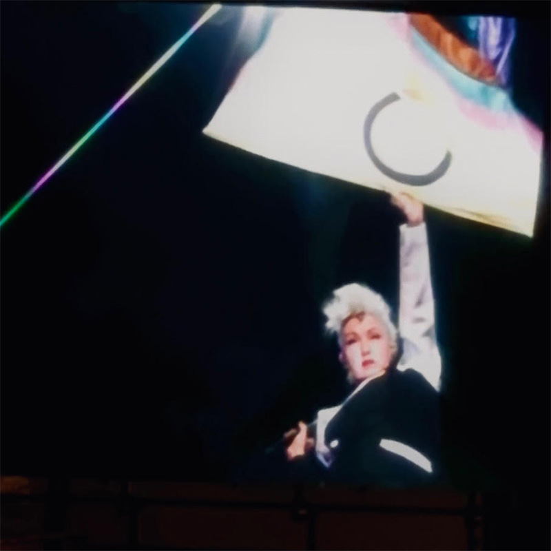 I went to the show by myself, intending to sit with friends there, but we were thwarted from sitting together through no one’s fault. (Well, maybe the venue’s fault but such is life.) I am not usually one for starting conversations as I am on the introverted side, but I had so many lively conversations with people, from the woman I stood in line with (hi, Jennifer, you’re awesome!) to the friendly women seated next to me. I’d brought an extra Girls Just Want To Have Fundamental Rights shirt I’d found thrifting in case someone from my friend group wanted it but it wasn’t a size anyone wore. (My friends and I met up but couldn’t sit together.) I gave my extra shirt to one of the women sitting next to me. Beyond the animated conversations were just so many warm smiles between all the people before the show in their bracelets, clashing patterns, fist-fulls of necklaces, neon hair and makeup. Maybe Cyndi attracts good people?